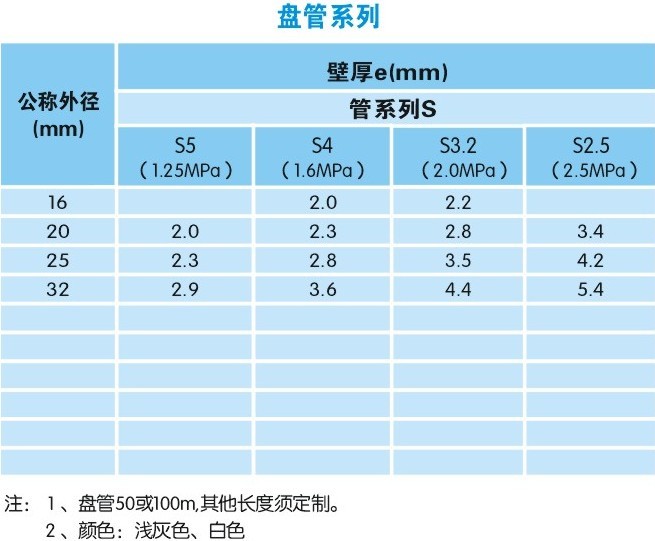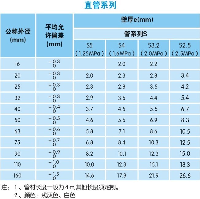 管材規(guī)格用dn*e表示,其公稱外徑、壁厚及其偏差見下表。